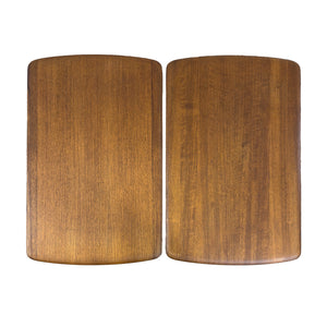 Description: Two-tier teak side tables by Rasmus Solberg. Norway.