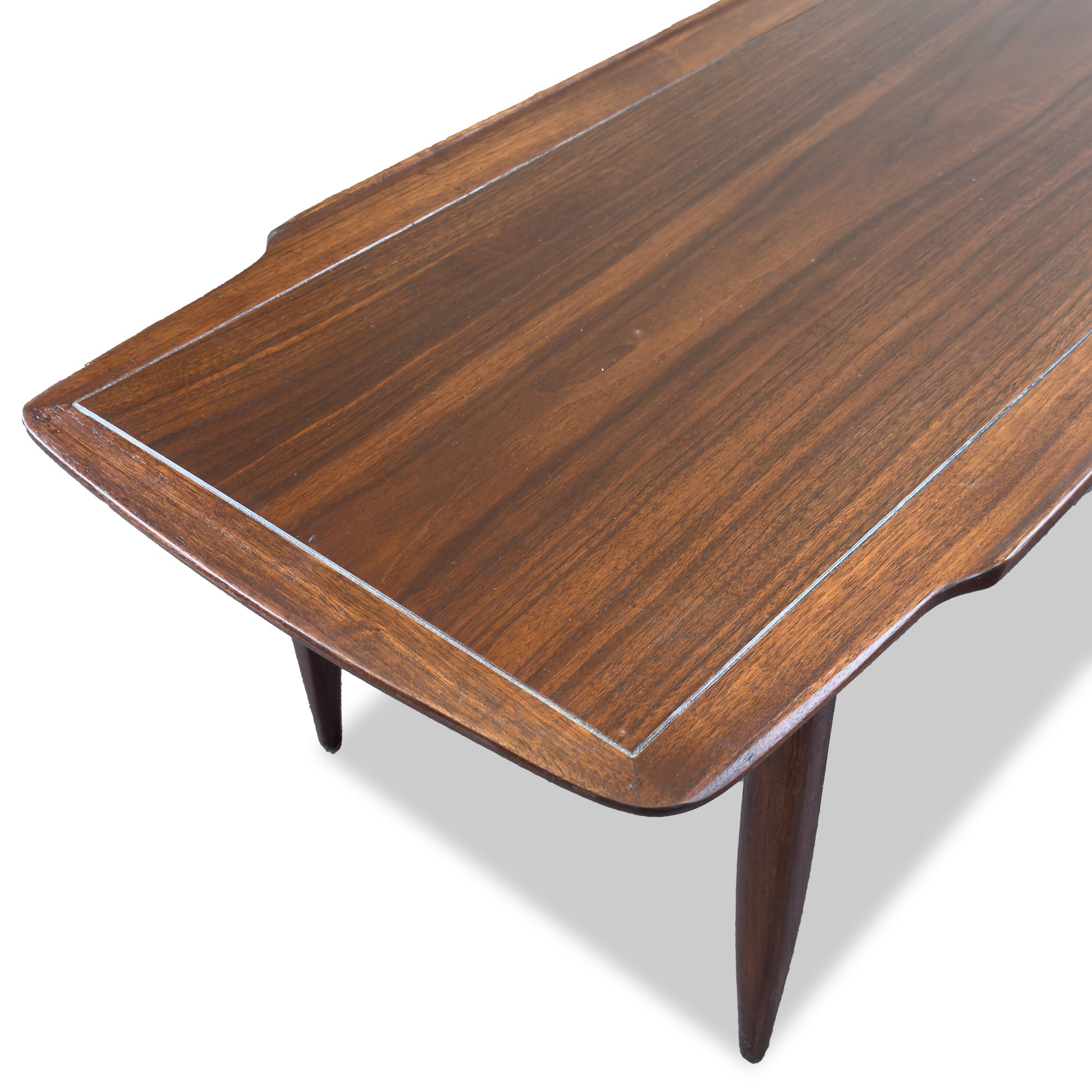 Description: Walnut coffee table with lipped edges.