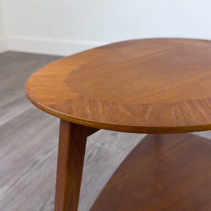 Description: Teak two-tier guitar pick side table.
