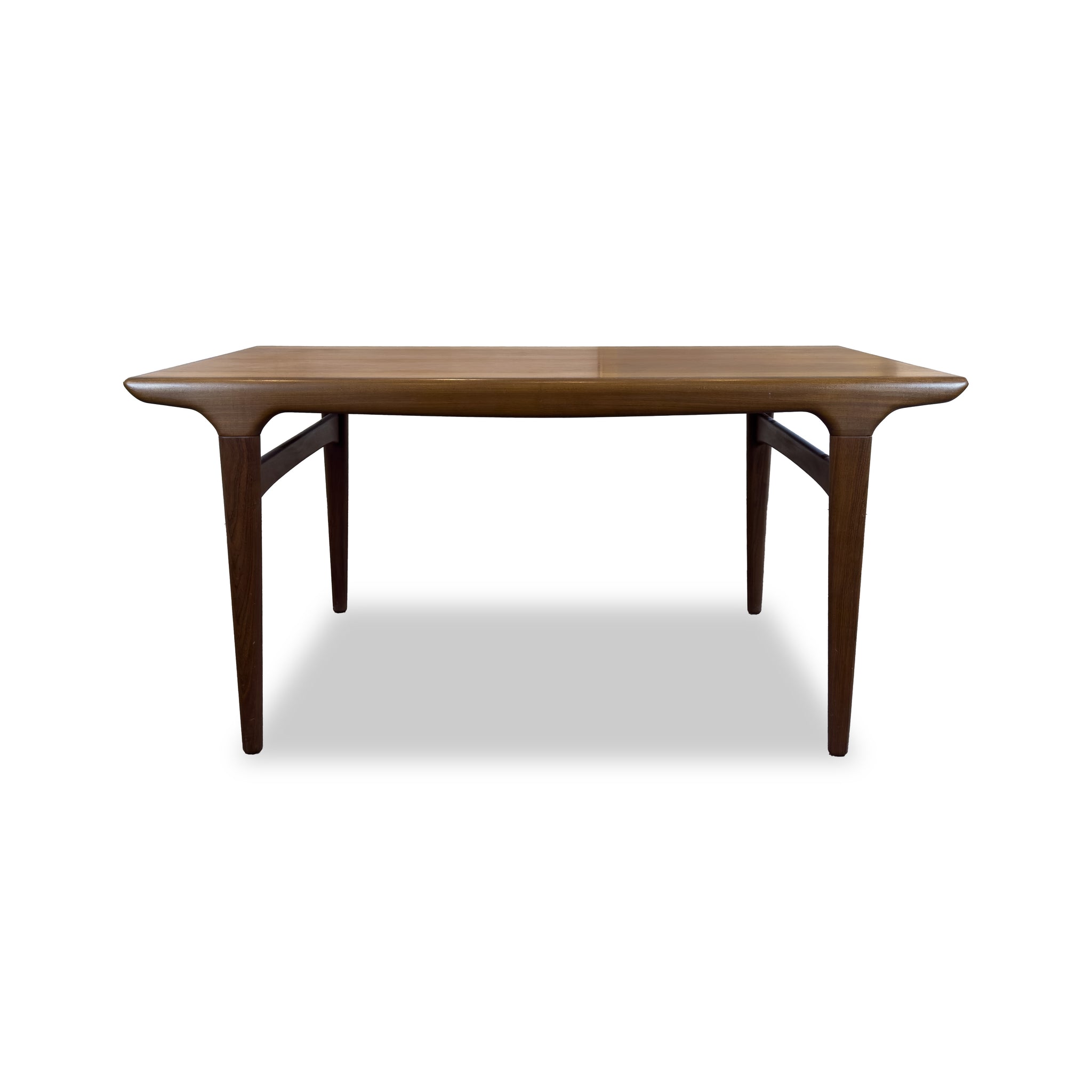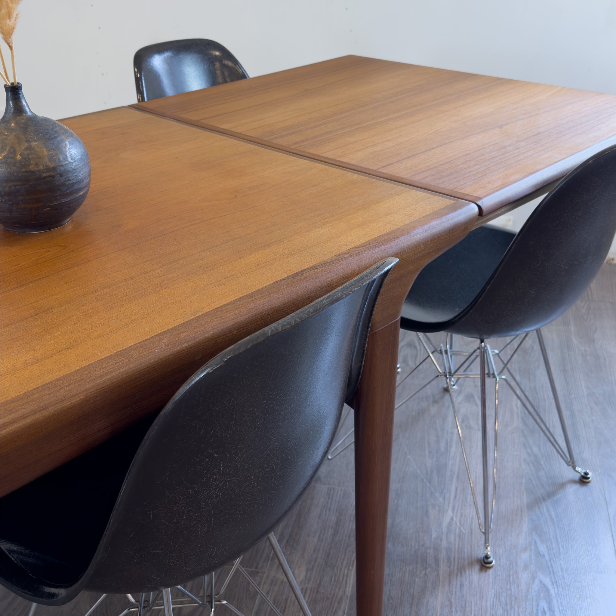 Description: Rare Mid century teak dining table by Johannes Andersen for Uldum Mobelfabrik 1960's. Clever draw-leaf design that makes extending this table a breeze. The perfect example of a mid century dining table. Note: the table is designed to only extend on one side.