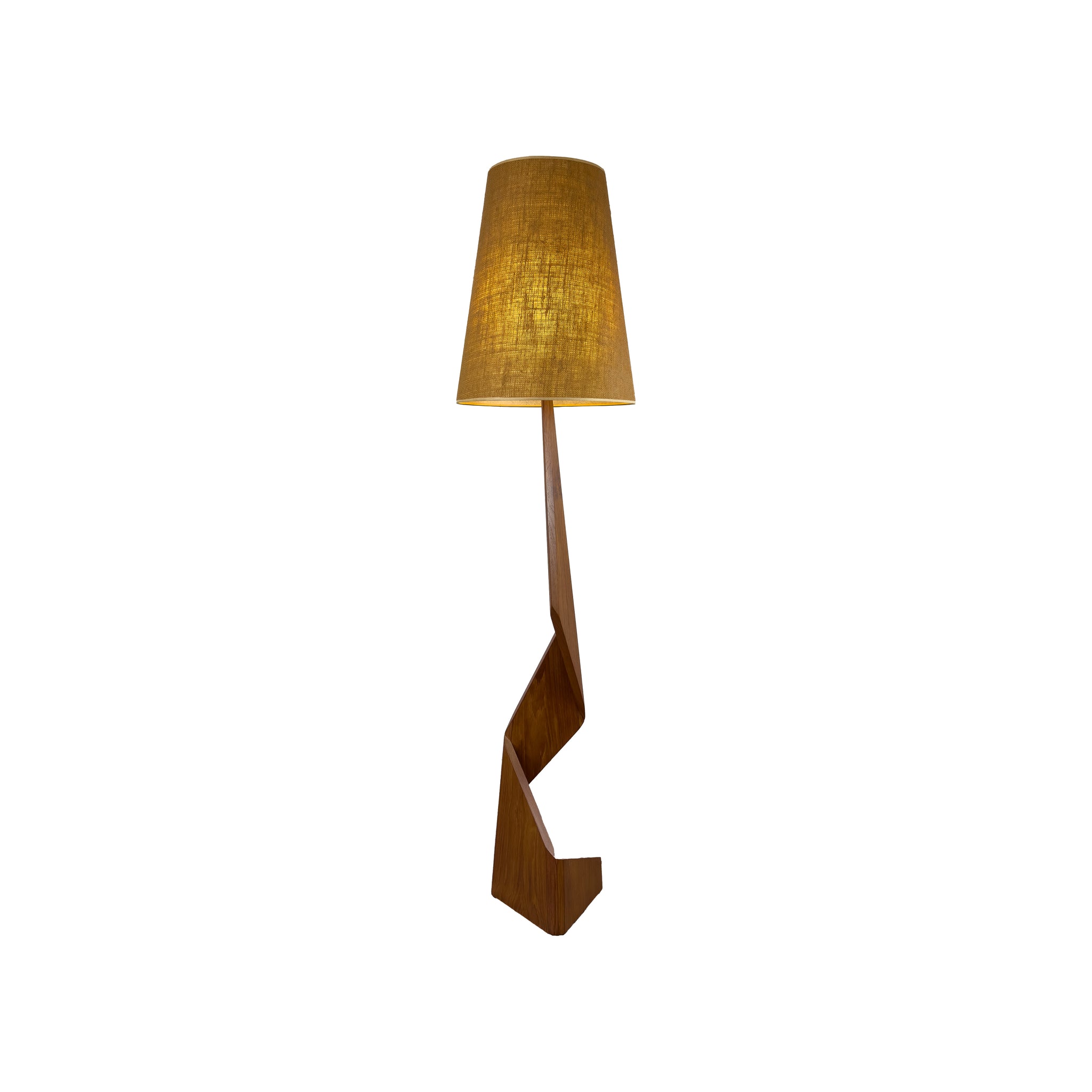 Description: Teak zig zag floor lamp.