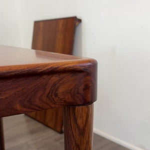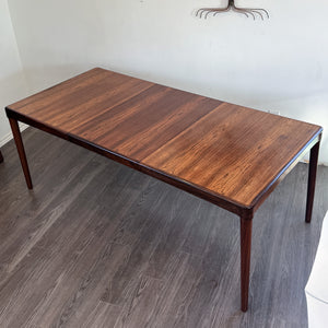 Description:Extendable rosewood dining table by H.W. Klein for Bramin. Optional leaf stores easily under the table top.