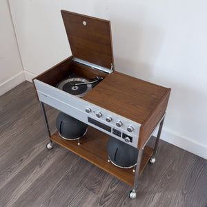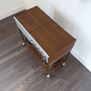 Condition Details: Refinished walnut body. Radio, tape, aux in all functioning well. Speakers sound great. Record player works but has a few quirks and could be serviced.
