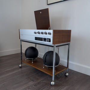 Description: Clairtone G3 Stereo System with Globe Speakers. Original rare stand.
