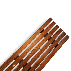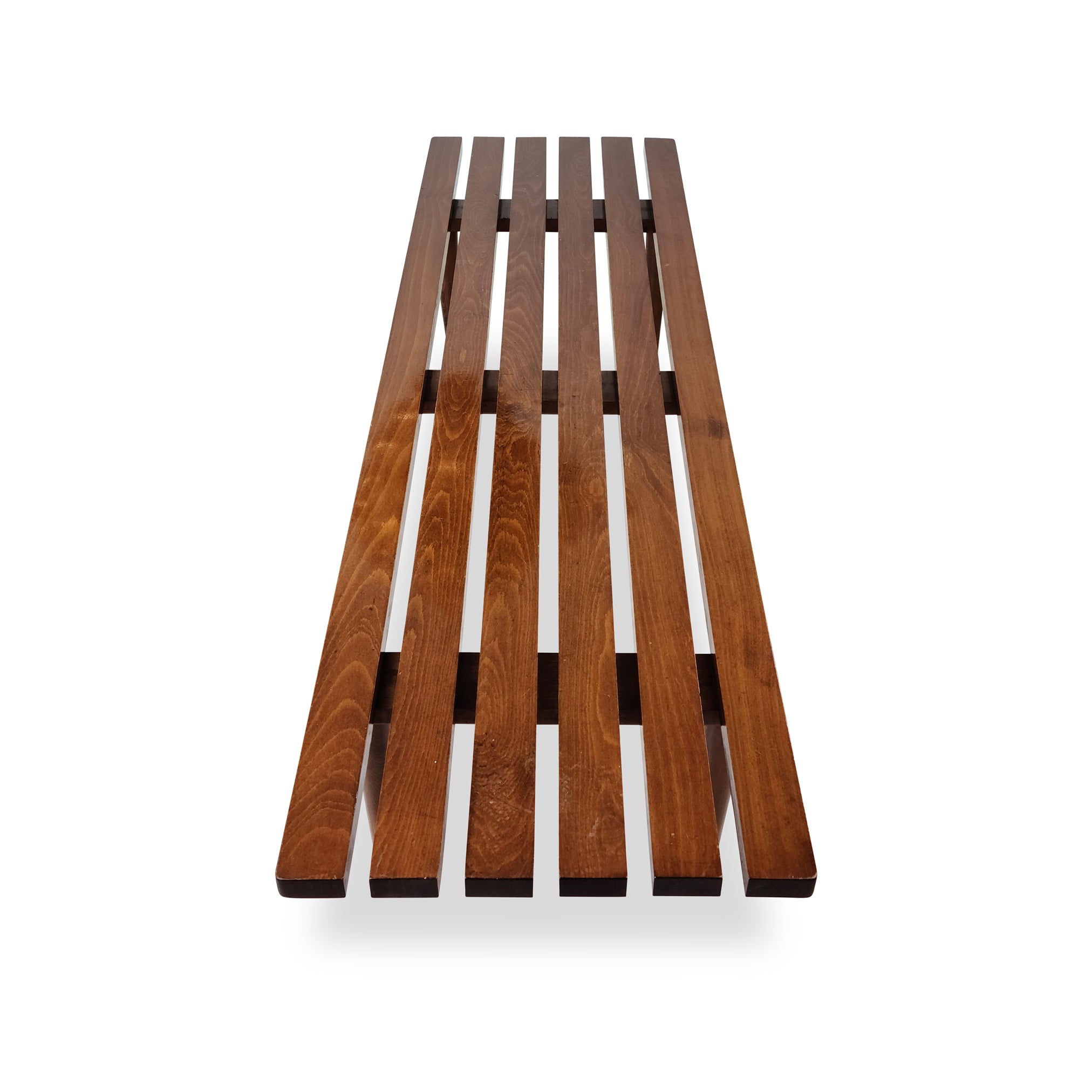 Description: Vintage beechwood slatted coffee table or bench. Excellent for a front entry, living room, foot of the bed. Clean, modern lines