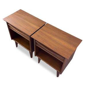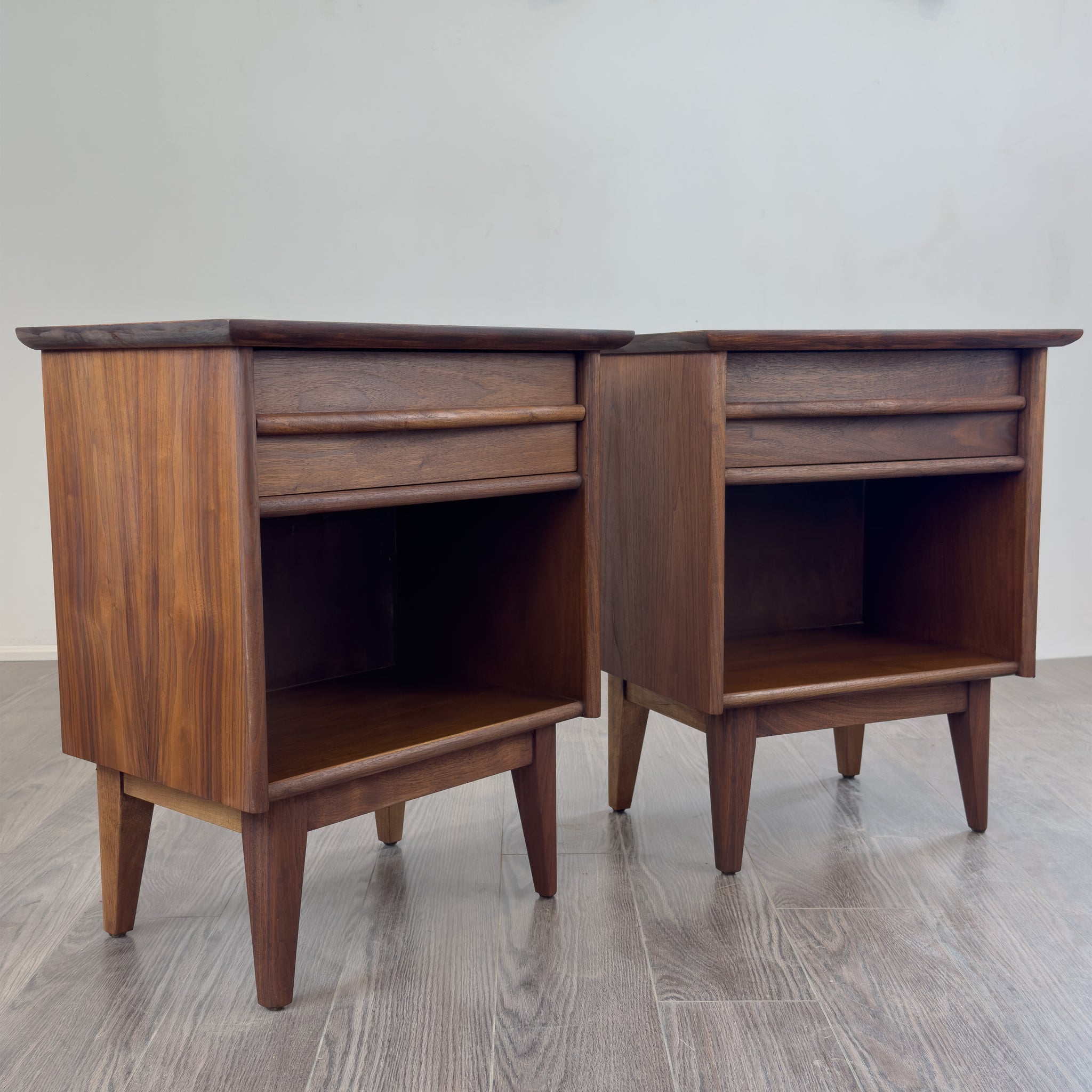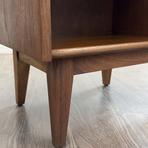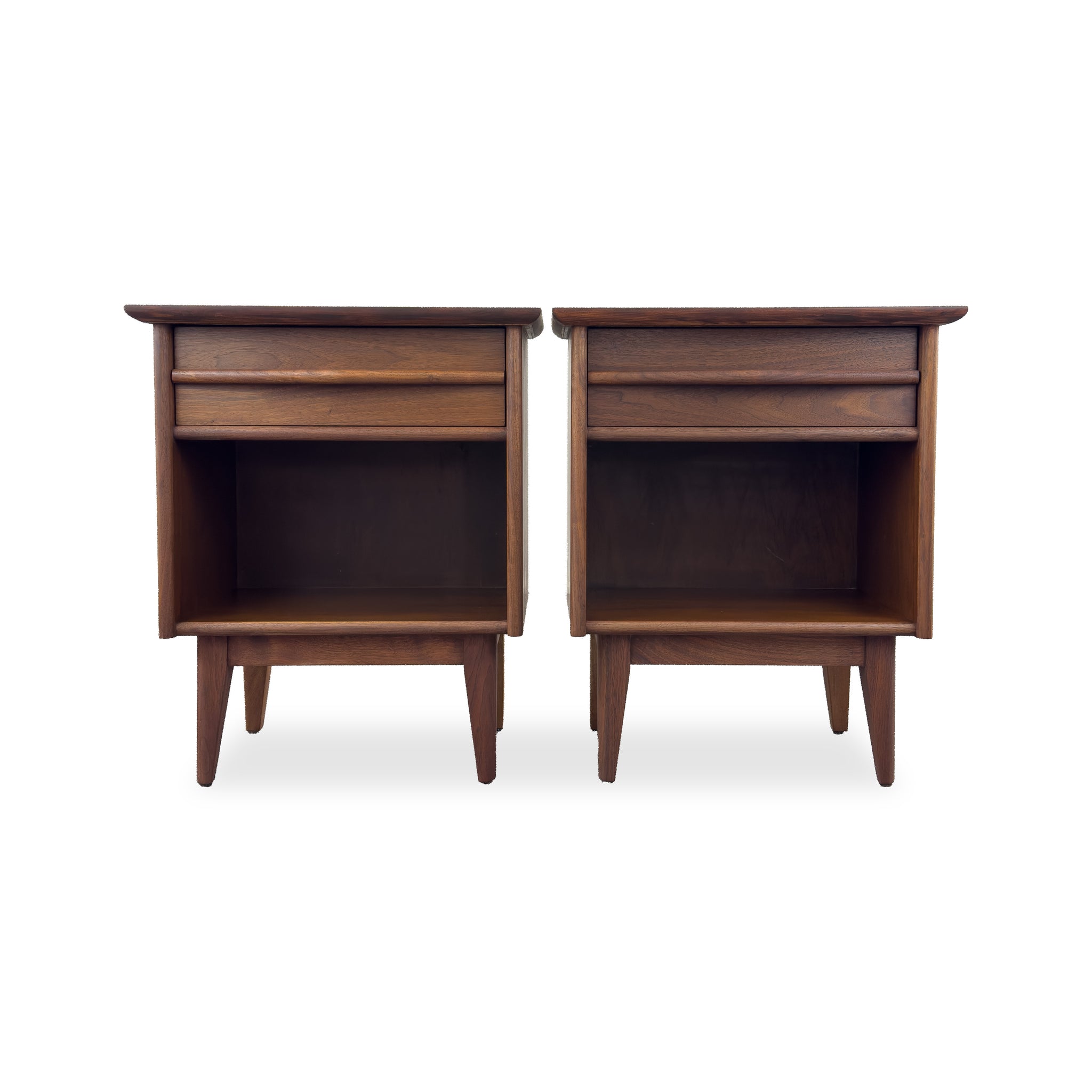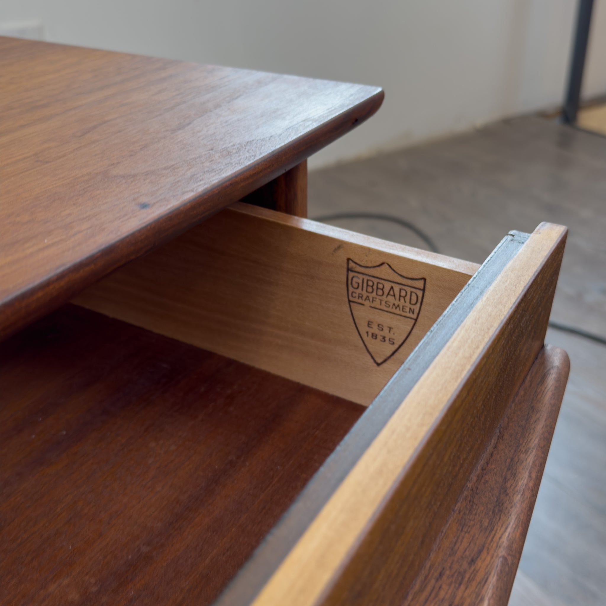 Description:Pair of walnut nightstands by Gibbard Furniture of Napanee, ON. Top drawers with lower cubbies for additional storage.